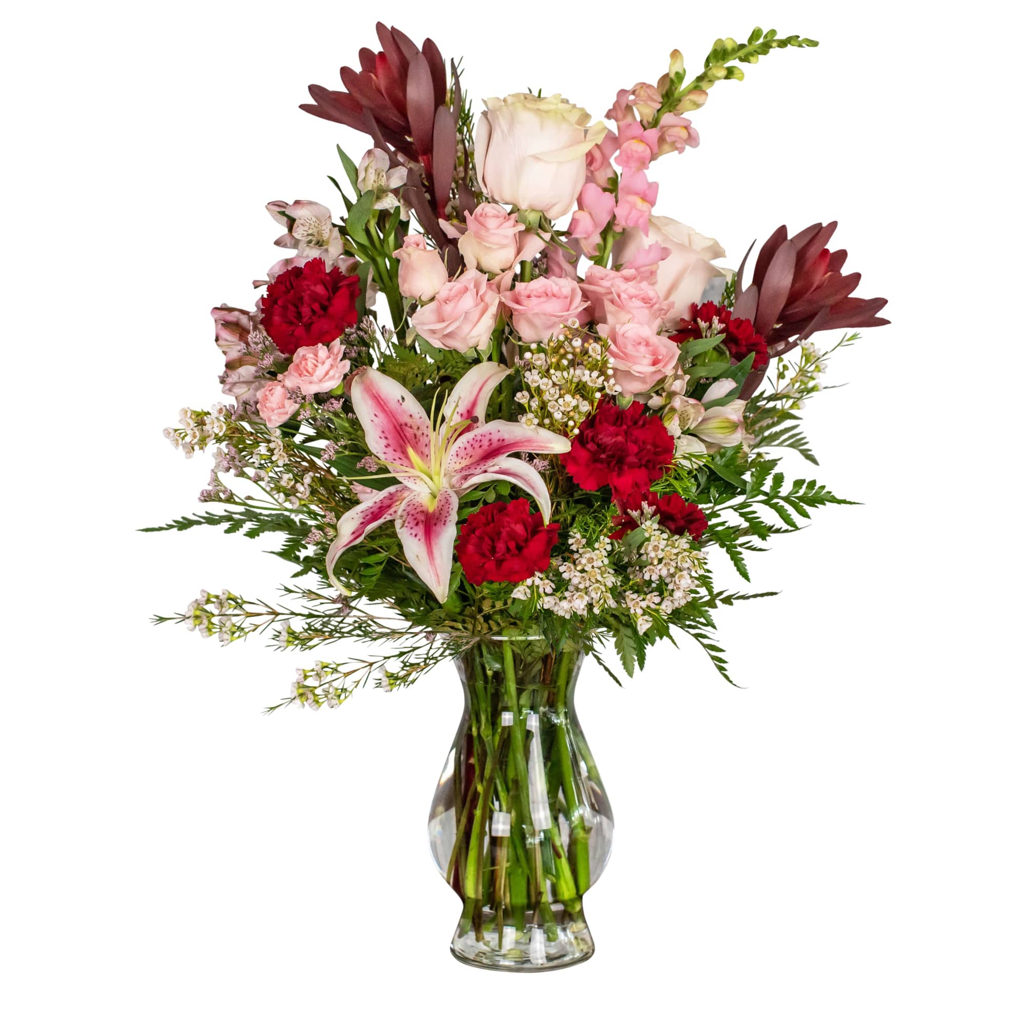 Although the actual bouquet may not precisely match the photo, its temperament will. Occasionally, substitutions of flowers and/or containers happen due to weather, seasonality and market conditions which may affect availability. If this is the case with the gift you’ve selected, we will ensure that the style, theme and color scheme of your arrangement is preserved and will only substitute items of equal value or higher value.